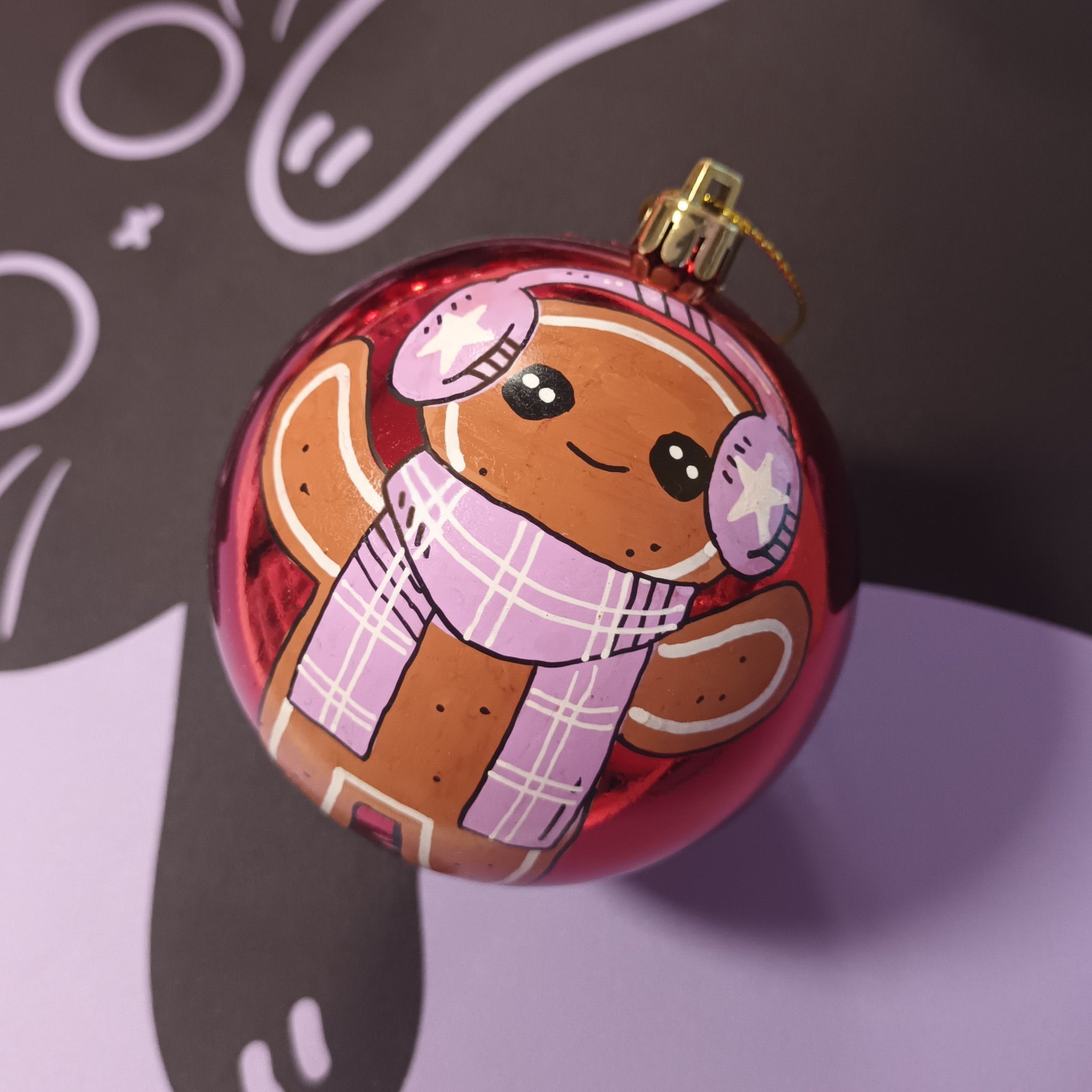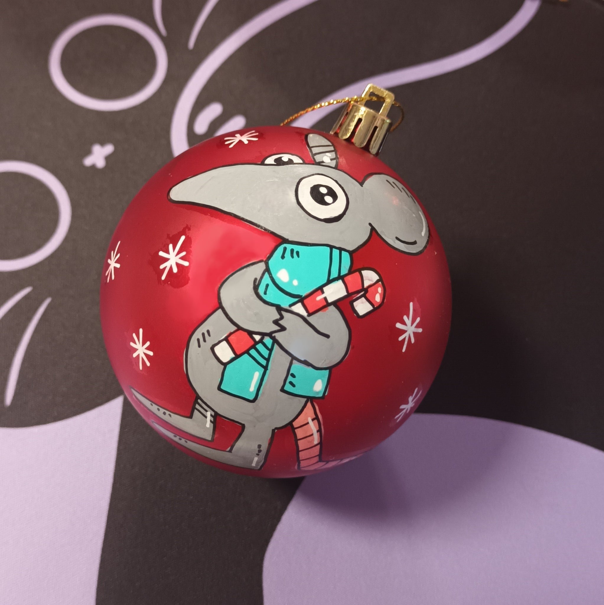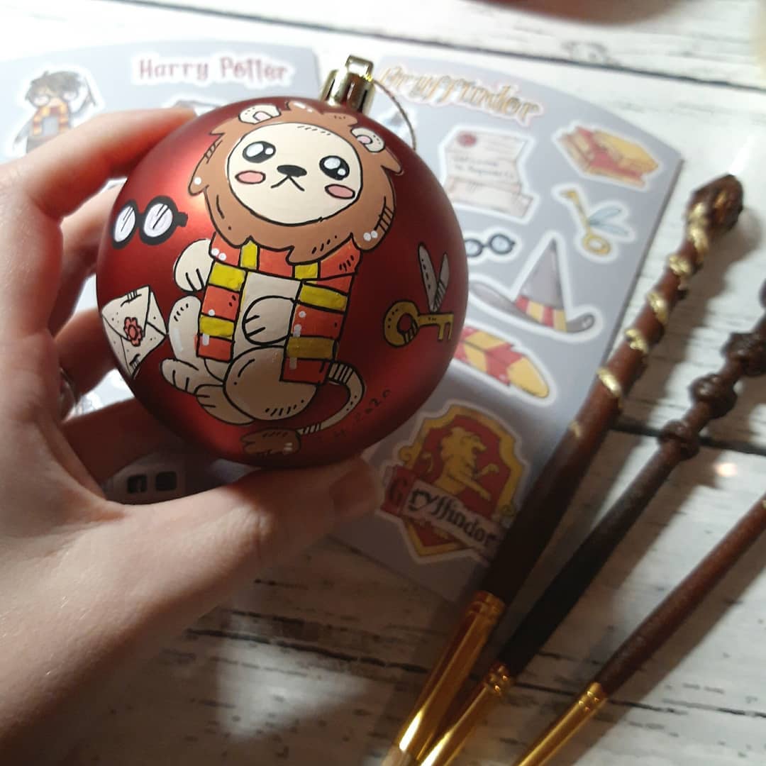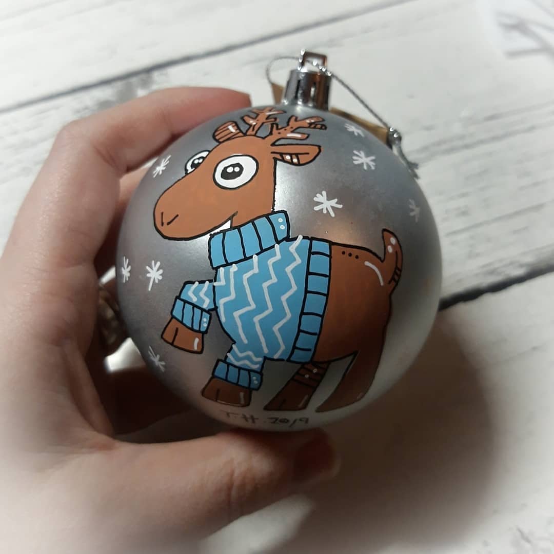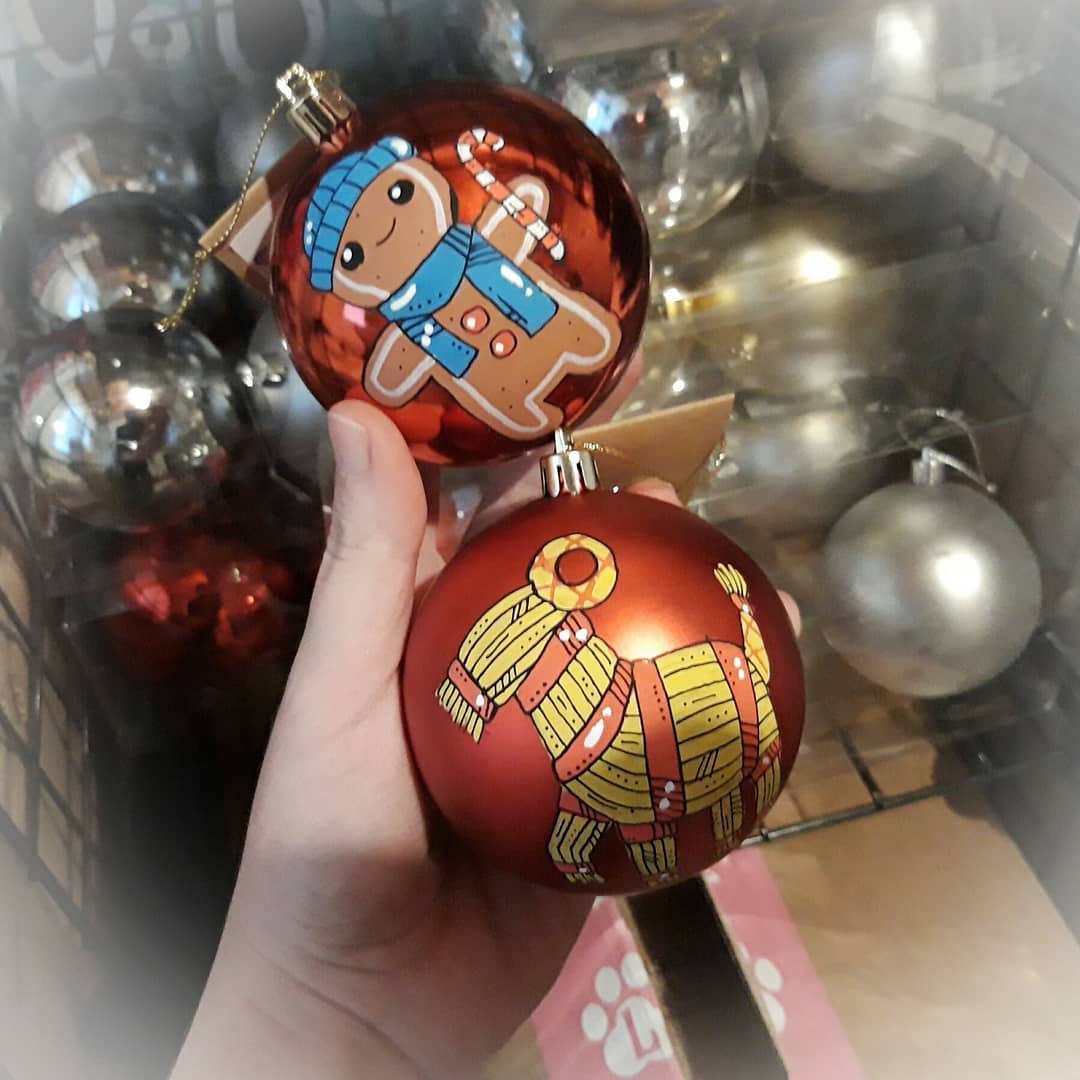 Käsin maalattuja joulupalloja tilaustyönä. Pallon halkaisija 8 cm.